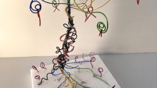 第132回 2025-2月15日 テーマ「埴輪(はにわ)をつくる!パート2」 ・・・・・・・・・・・・・・・・・・・・・・・ 埴輪づくり(パート2)のスタートです。前回のイメージ図に基づいて粘土をコネコネ立体にしていきます。平面と違って立体にする時には、思ったように立たなかったりゴロリと崩れたりするのですが、心棒を入れたりしながら工夫し、バランスの取り方ができるようになりました。 平面図から立体になった埴輪達、作品写真を見てみてください。 結果、パワフルな立体になると一層リアルな埴輪時代と意識が繋がっている気分になりました。 自分の埴輪につけたタイトルは、 「すべての埴輪の守り神」「文明を支える象」「白い模様が浮かび上がってきたキングジャケ」「水面に浮かぶ謎のカッパ」「こびとに噛みつかれた蛇と福井ラプトル」「魔法島の埴輪」「金の信じる神」「3つの役割をそれぞれ果たす神と見習いキツネ」「平安初期 日本最後の埴輪」「清潔を守るパンダ」「深海の神」「ワイルの神を守るオオカミ」など。